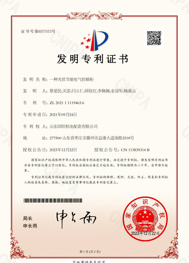 山東國(guó)恒機(jī)電配套有限公司簡(jiǎn) 介 山東國(guó)恒機(jī)電配套有限公司是一家集新能源、高科技、智能化生產(chǎn)研發(fā)、制造、銷(xiāo)售為一體的綜合性現(xiàn)代化高新技術(shù)企業(yè),公司座落在魯班故里、墨子之鄉(xiāng)滕州,公司始建于2005年,注冊(cè)資本1億元,擁有各類中、高級(jí)專業(yè)技術(shù)人員100余名。主營(yíng)業(yè)務(wù)涉及高科技智能電力裝備、新能源儲(chǔ)備輸送,220kv及以下輸變電工程勘察設(shè)計(jì)、制造、銷(xiāo)售、安裝、售電和智能充電樁能效運(yùn)維,并從事生產(chǎn)制造交直流充電樁設(shè)備、成套開(kāi)關(guān)設(shè)備、各型號(hào)高低壓開(kāi)關(guān)柜、箱式變電站等電氣設(shè)備,是棗莊地區(qū)唯一一家國(guó)資入股的新能源高端品牌企業(yè)。公司擁有獨(dú)立…